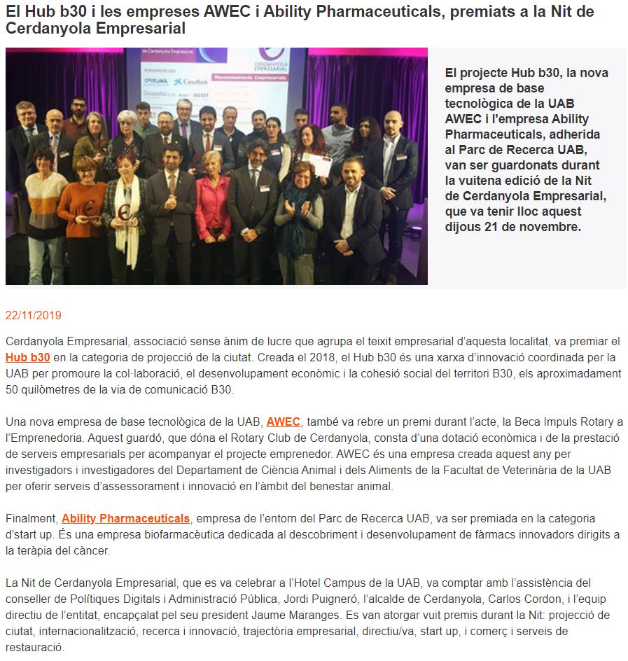 Ability Pharma receives the acknowledgement from Cerdanyola Empresarial
